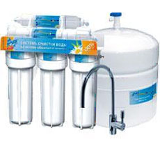 Фильтр в сборе с картриджами, накопительная емкость для чистой воды, четыре цветные трубки, установочный комплект, ключ для корпусов предварительных фильтров, паспорт, упаковочная коробка, гарантийный талон.