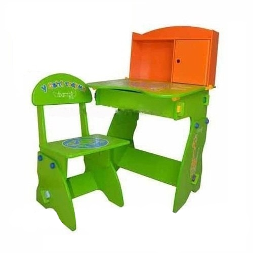 Изготовлено из высококачественных материалов, разукрашено нетоксичными красками на водной основе. Материал — МДФ. Регулируется высота стола и стула. Столешница поднимается, под ней вместительный ящик. Предусмотрена подставка для ног.