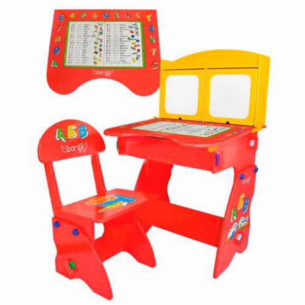 Боковые части парты Bambi W 077 и сиденье стульчика украшены привлекательными рисунками.