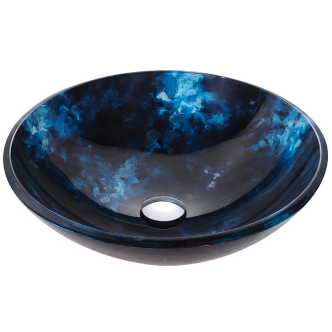 Чаша выполнена в цветах голубого металика с вкраплениями чёрного, и подчеркнёт любой ванный интерьер