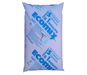 ECOMIX A — комбинированная загрузка, которая даёт возможность эффективной очистки воды с повышенными жесткостью, содержанием железа, марганца, аммония и органических соединений, при помощи одного фильтра (вместо трёх) и использованием одного востанавливающего реагента, доступного всем, это таблетированная соль.