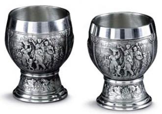Набор состоит из двух рюмок, декорированные пищевым оловом. Стопки актуальны на любом праздничном столе. Однако оловянные стопки способны стать не только предметами праздничной сервировки стола, но и достойными подарками.