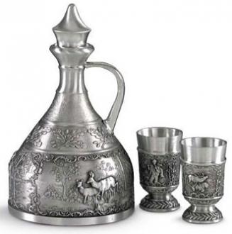 Набор состоит из бутылки графина и двух рюмок.