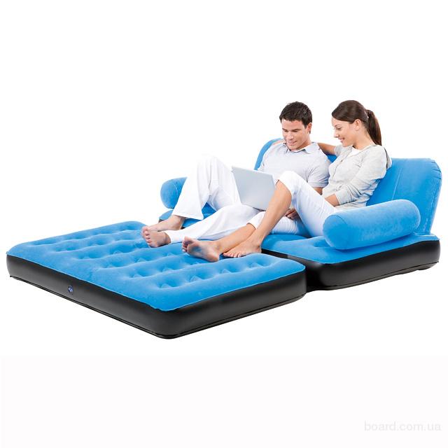 АКЦИЯ ДО 13-го июня - новая цена! Bestway 67356 Надувной диван Надувной диван-трансформер 5 в 1. Диван оснащён встроенным электронасосом. Диван Bestway 67356 можно превратить в 5 разных вещей: диван, разложеный лежачий диван, шезлонг для пляжа,или бассейна, двухместная кровать, одноместная высокая кровать. Диван Bestway 67356 удобен в использовании и мобилен. В комплекте присутствет сумка с ручками для транпортировки дивана. Надувается диван Bestway 67356 очень быстро с помощью электрического насоса. Изготовлен из высокопрочного материала поливиниллхлорида. Устойчив к воздействию темпереатур и механическим нагрузкам