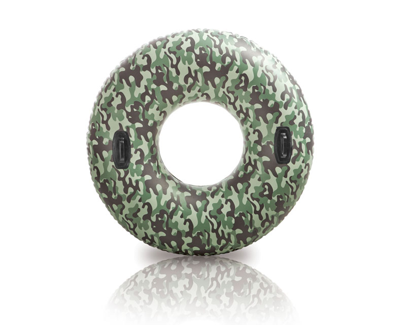 Intex 58265 Надувной круг- отличный надувной круг, стилизованный под военный камуфляж. Круг оборудован двумя ручками, что позволяет его активно использовать во время водных игр.