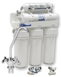 Очищенная вода сохраняется под давлением в резервуаре, откуда подается на кран встроенный в кухонную мойку или стол.