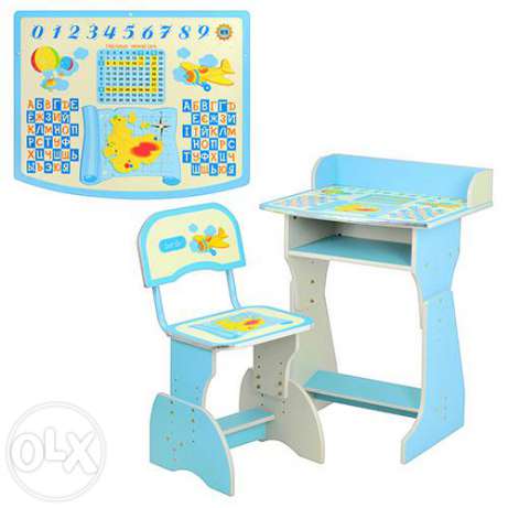 удобная красочная парта с картинками, алфавитом и цифрами;