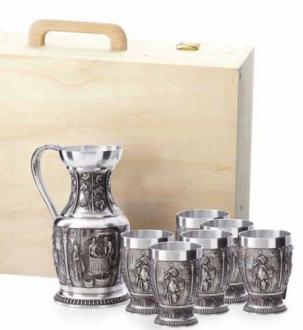 Украсит самый изысканный стол и доставит эстетическое удовольствие любителям классического напитка. Подарочный набор состоит из кувшина и шести бокалов для вина.