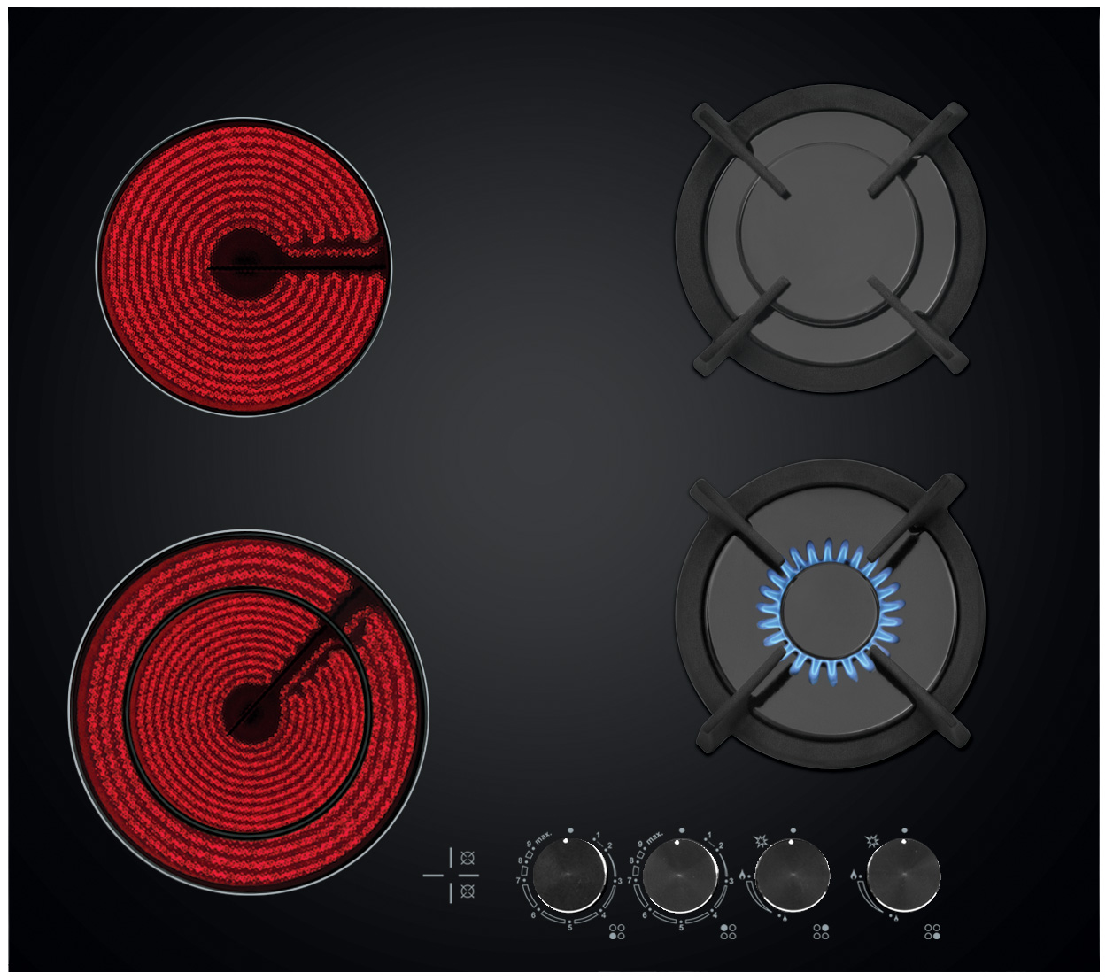 Комбинированная электро-газовая варочная поверхность Gunter & Hauer GHK 632 IX с 2 конфорками HiLight