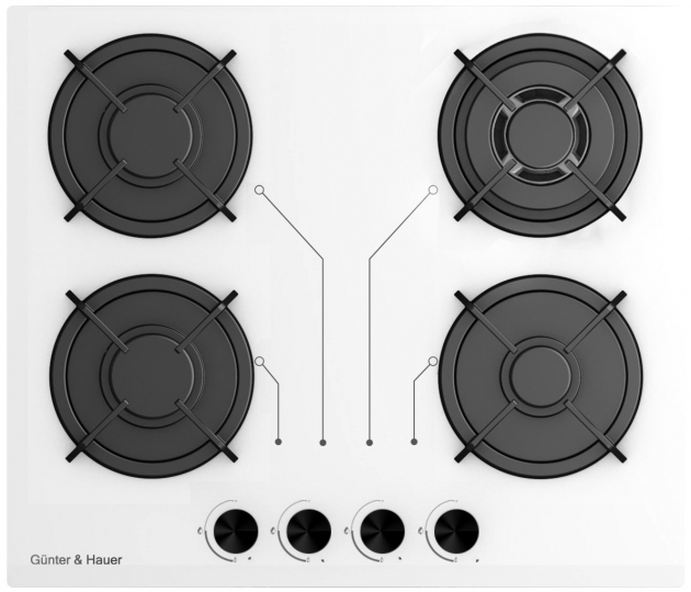 Газовая варочная поверхность «Газ на стекле» Gunter & Hauer S 6 W с электрическим розжигом одной рукой