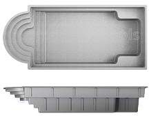Бассейн Compass XL-JAVA имеет современную геометрическая форма чаши бассейна. Два входа в бассейн можно использовать для зоны отдыха. Ступени, сиденья для отдыха и дно бассейна имеют противоскользящюю поверхность Slip Stop. Возможность установки гидромассажных форсунок в широкой части ступеней и в зоне отдыха бассейна. Интегрированный гидростатический вентиль, препятствует выталкиванию бассейна грунтовыми водами.