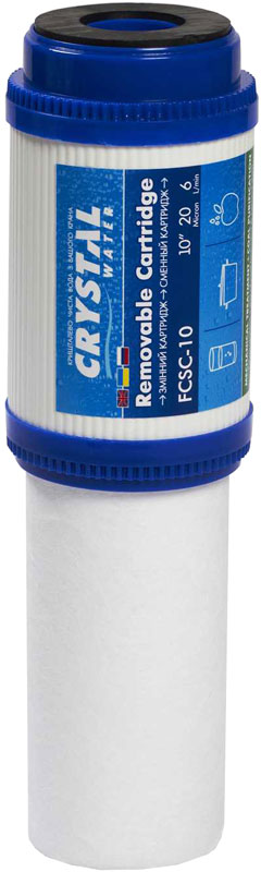 Внимание! Использовать картридж FCSC-10 только для воды безопасной по микробиологическим показателям. Универсальный двухступенчатый картридж FCSC-10: полипропиленовое волокно + активированный уголь. Рабочая температура - до 60°С. Минимальное уменьшение давления при большой производительности. Ресурс FCSC-10 от 3 до 6 месяцев*.