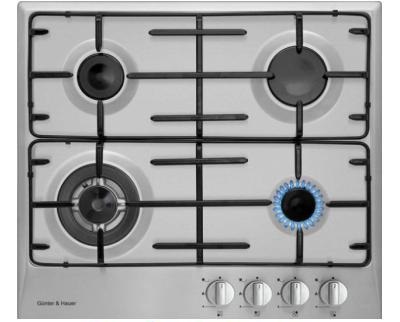 Варочная поверхность Gunter&Hauer GH 440 TX также имеет электроподжиг, газ-контроль.Варочная поверхность Гюнтэр и Хауэр GH 440 TX это 4 конфорки, конфорка с трехрядным пламенем турбо, цвет нержавеющая сталь, размеры (ш/г/в): 580x510х100мм