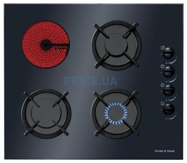 NEW!! Газоэлектрическая независимая варочная поверхность! Газоэлектрическая варочная поверхность Gunter&Hauer GHK 631 IX имеет закаленное стекло, 3 газовых конфорки + 1 электрическая, чугунные решетки. Так же Газоэлектрическая варочная поверхность Gunter&Hauer GHK 631 IX расчитана на 9 уровней регулировки мощности электрической конфорки, 4 варочные зоны, газ контроль, автоматическое отключение при перегреве. Газоэлектрическая варочная поверхность Гюнтер и Хауэр GHK 631 IX - цвет черный, размеры (ш/г/в): 580х520х106 мм.