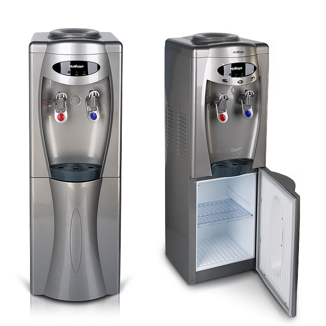 HotFrost V208XЕS кулер (диспенсер) напольный с функцией нагрева бутылированной воды (5 л/ч) и электронным охлаждением (1 л/ч). HotFrost V208XЕS оснащен кранами "Нажми кружкой " и верхней загрузкой бутыли и шкафчиком-озонатором, объёмом 17л.