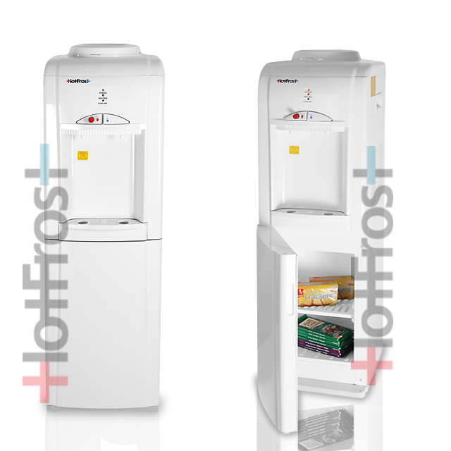 HotFrost V802С кулер (диспенсер) напольный стильный с функцией нагрева бутылированной воды (5 л/ч) и компрессорным охлаждением (2 л/ч). HotFrost V802С оснащен шкафчиком для хранения объёмом 17 л и верхней загрузкой бутыли. HotFrost V802С оснащен выключателями на боковой панели, которые позволяют отключать нагрев и охлаждение воды. Кнопка подачи горячей воды с функцией защиты от детей. Нагревательный элемент бачка горячей воды не контактирует с водой.