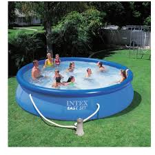 Intex 28164 Надувной бассейн серии Intex Easy Set Pool легко и быстро устанавливается без применения дополнительных технических средств (отвертка пригодится только для установки насос-фильтра и лестницы). Процесс сборки Intex 28164 Надувной бассейна до наполнения его водой занимает всего 15 минут. Надувной бассейн изготовлен из высококачественного ПВХ синего цвета, технология Super-Tough придает стенкам бассейна тройную прочность. Стенки сделаны из трех отдельных слоев: два слоя плотного винила и один внешний - полиэстр для особой прочности. Борта бассейна поддерживаются надувным кольцом, которое, по мере заполнения бассейна, поднимается вместе с уровнем воды, расправляя стенки. В комплекте фильтрующий насос для очистки воды и все необходимые аксессуары: лестница, тент, подстилка. Фильтрующий насос обеспечивает рециркуляцию и очистку воды в бассейне. Сливной клапан легко присоединяется к садовому шлангу, т.е. слить воду можно в любое удобное место. Бассейн не нуждается в подготовке грунта.