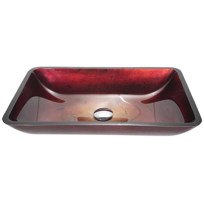 Прямоугольный умывальник выполнен в цветах красного металика с черными вкраплениями.