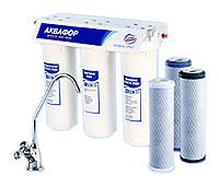 Система из трех фильтрующих модулей. Обеспечивает исключительное качество очистки воды за счет многоступенчатой фильтрации, рассчитан на использование большим количеством людей. Подойдет как для квартиры, так и для офиса, кафе или детского сада. Обеспечивает универсальную очистку водопроводной воды, у лучшает вкусовые качества воды. Не снижает жесткость воды. Комплектуется отдельным краном.